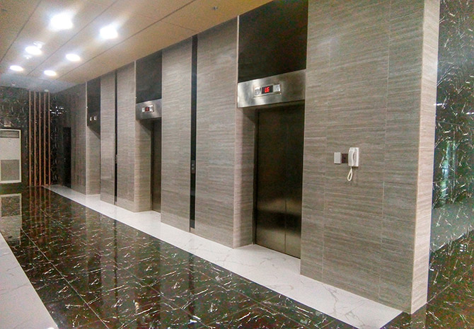 passenger elevators, 2 parking elevators, 1 service elevator